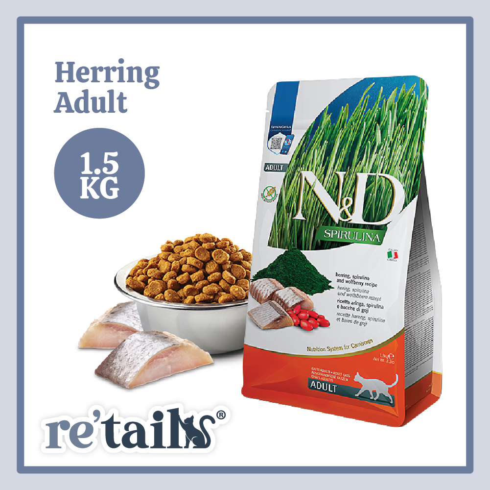Farmina N&D Spirulina is a premium, grain-free cat food designed to boost feline health with natural ingredients and spirulina, a superfood rich in antioxidants that supports immunity. This balanced formula promotes vitality, digestion, and overall well-being, tailored to meet cats’ unique nutritional needs. It’s an ideal choice for enhancing your cat’s coat, immune system, and diet naturally.